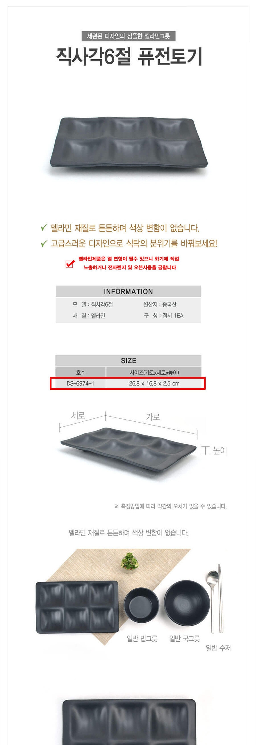 멜라민 퓨전토기 6절 직사각찬기 사각그릇