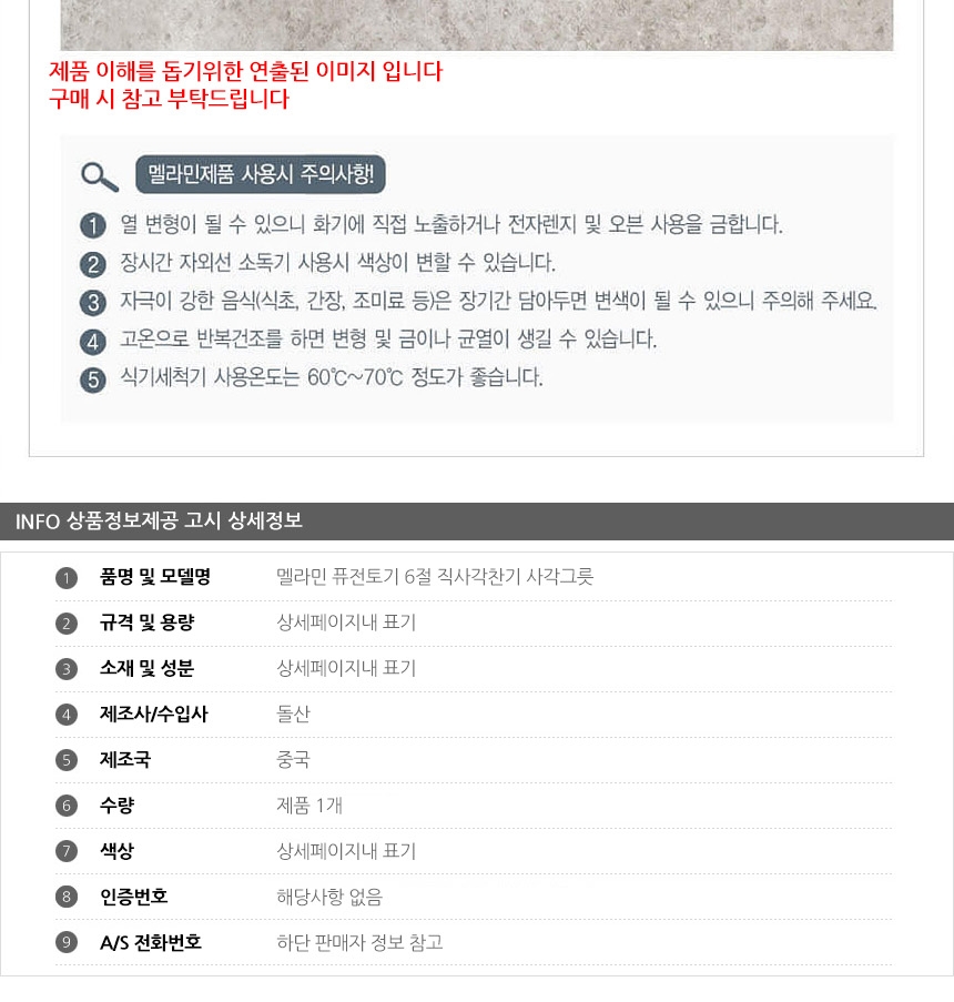 멜라민 퓨전토기 6절 직사각찬기 사각그릇 이미지/