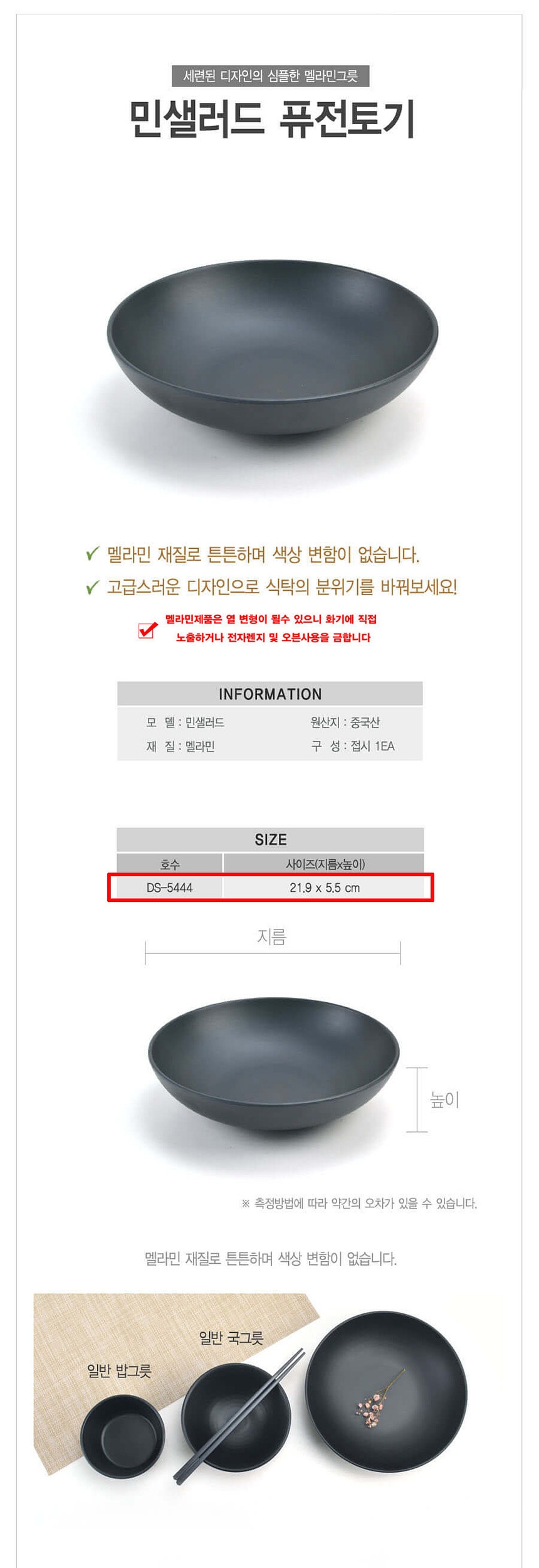 멜라민 퓨전토기 민무늬 샐러드볼 디저트볼 22cm