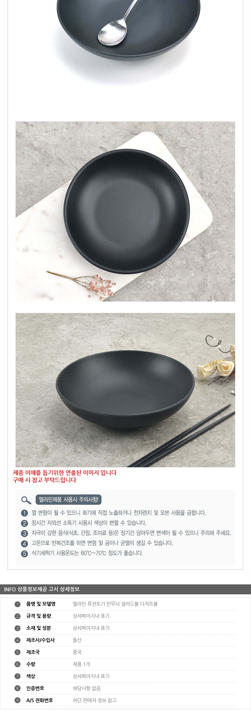 멜라민 퓨전토기 민무늬 샐러드볼 디저트볼 22cm 이미지/
