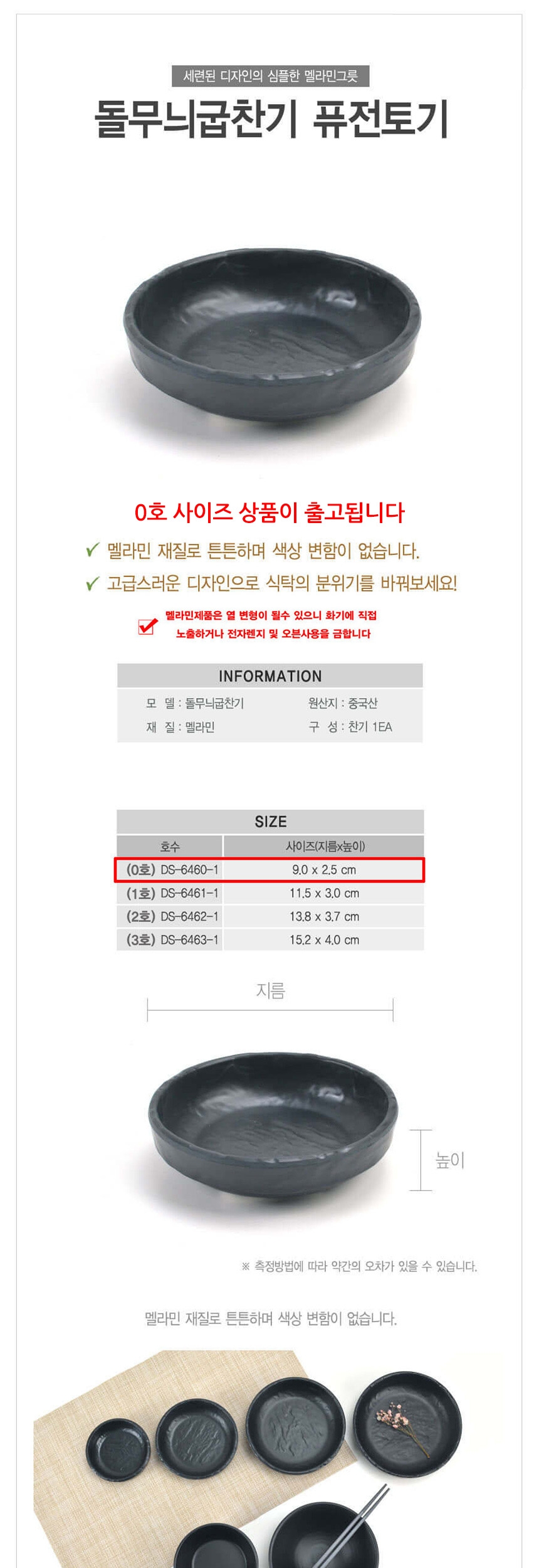 멜라민 퓨전토기 돌무늬 굽찬기 원형찬기 0호 9cm