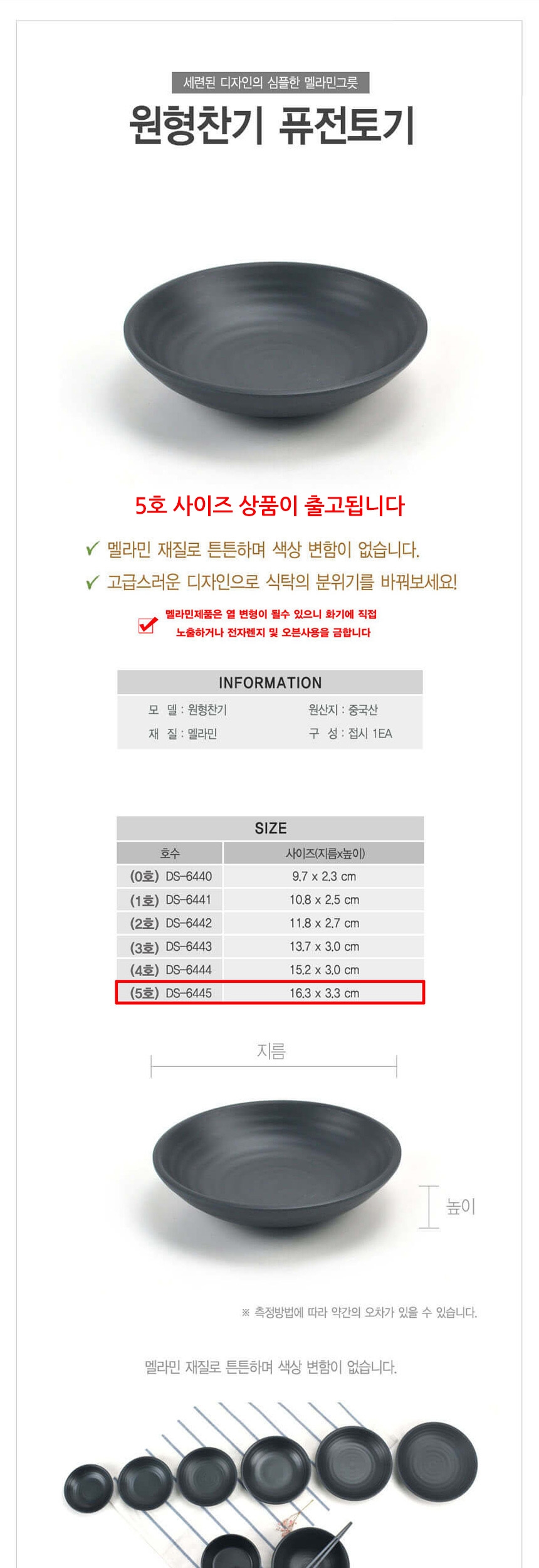 멜라민 퓨전토기 원형찬기 앞접시 5호 16cm