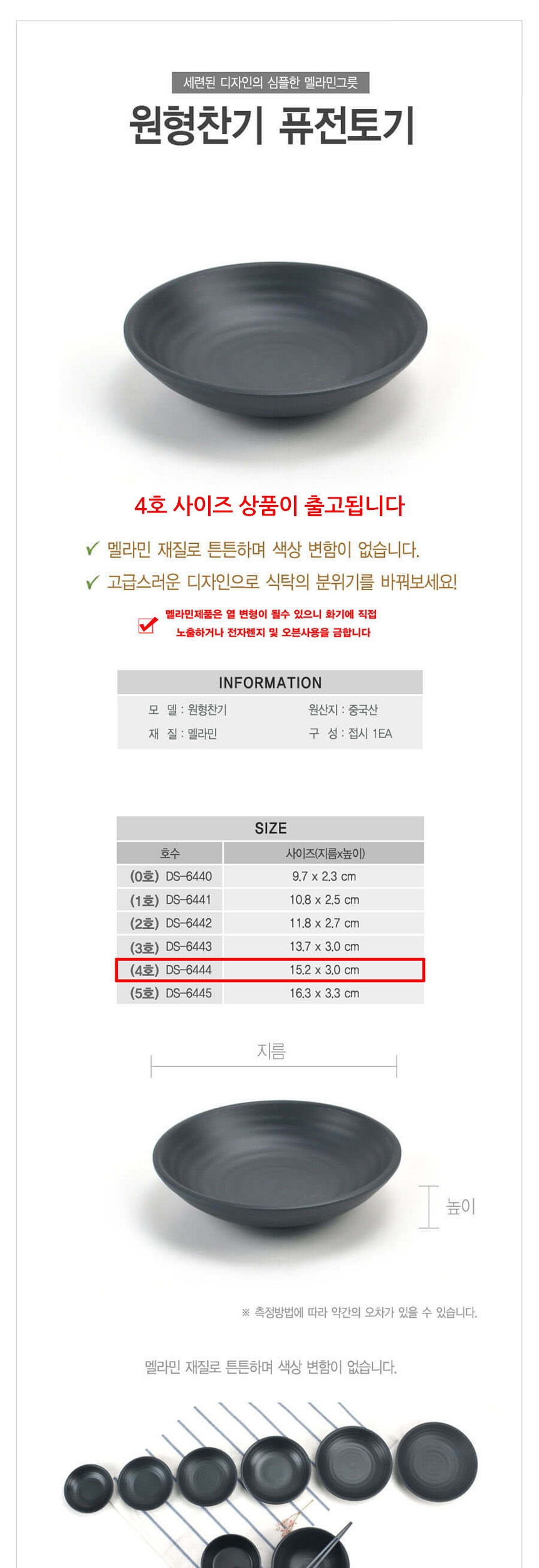 멜라민 퓨전토기 원형찬기 앞접시 4호 15cm
