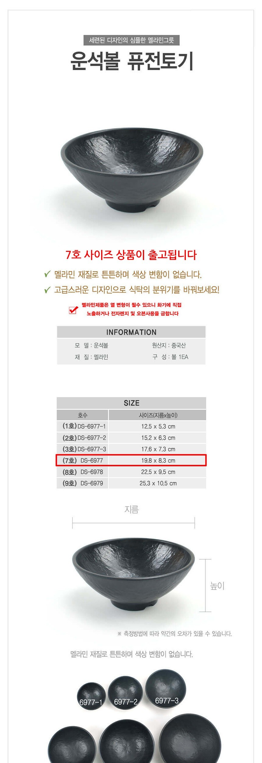 멜라민 퓨전토기 운석볼 비빔그릇 대접 7호 이미지/