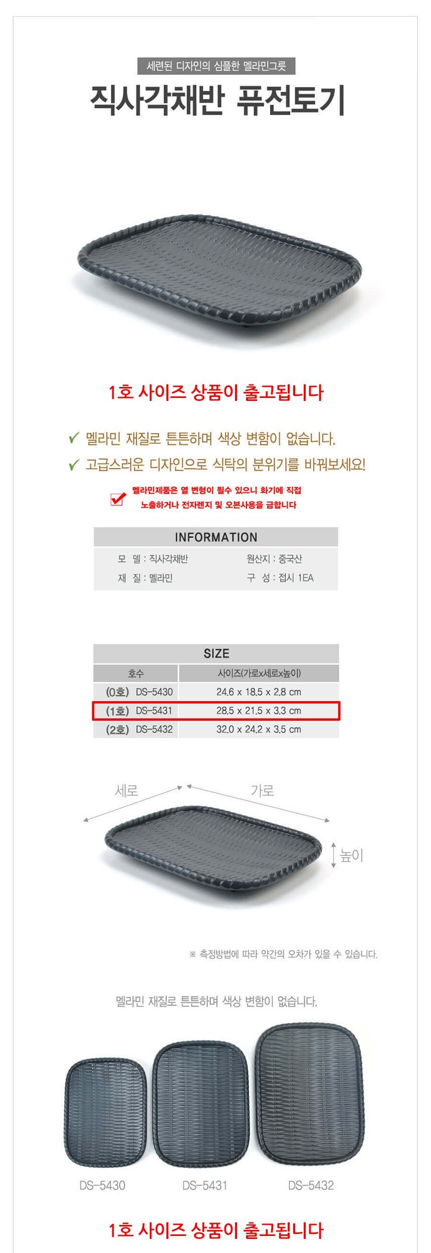 멜라민 퓨전토기 채반모양 직사각접시 1호