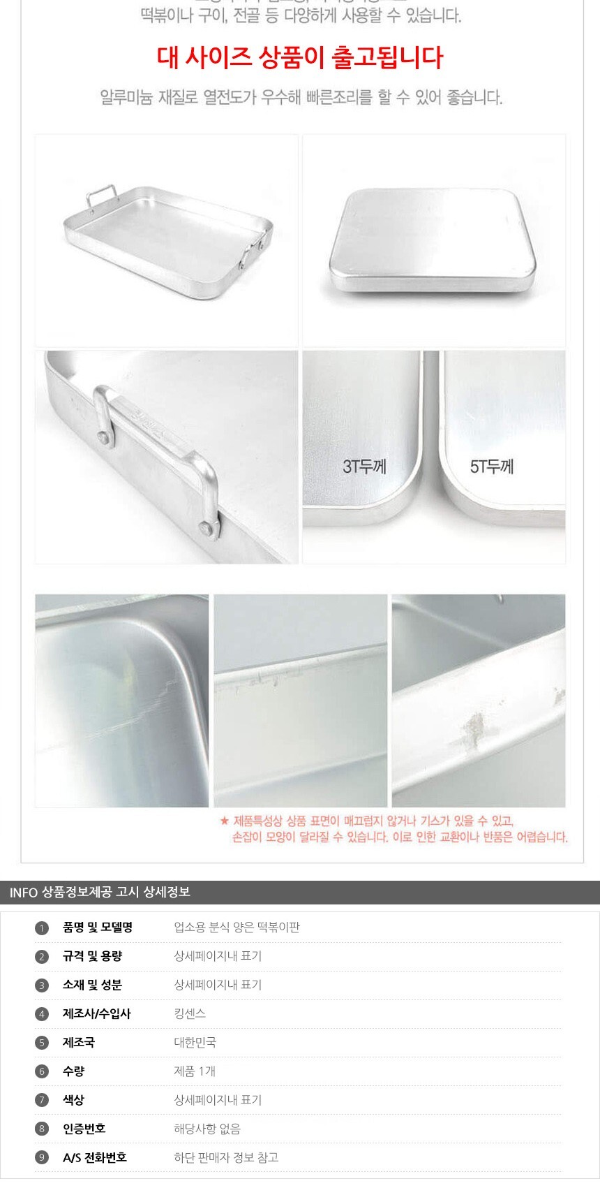 업소용 분식 양은 떡볶이판 대형 두께 5T