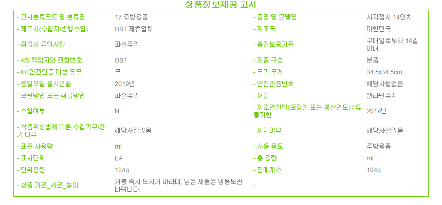 제조자 상품상세설명에 표기