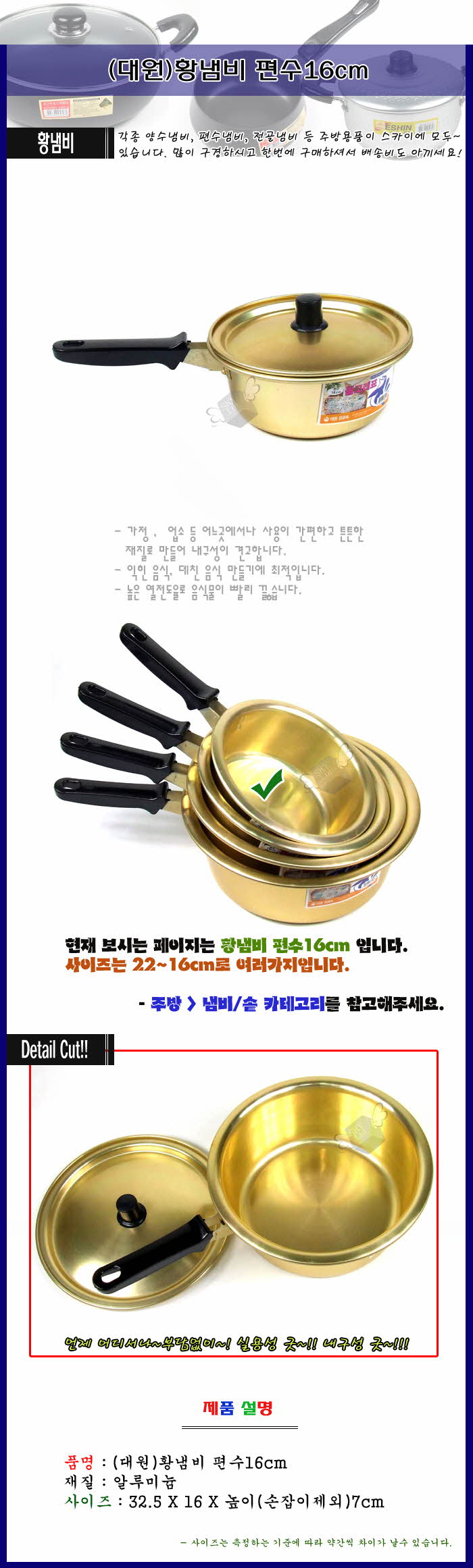 대원 황냄비 편수16cm 이미지/