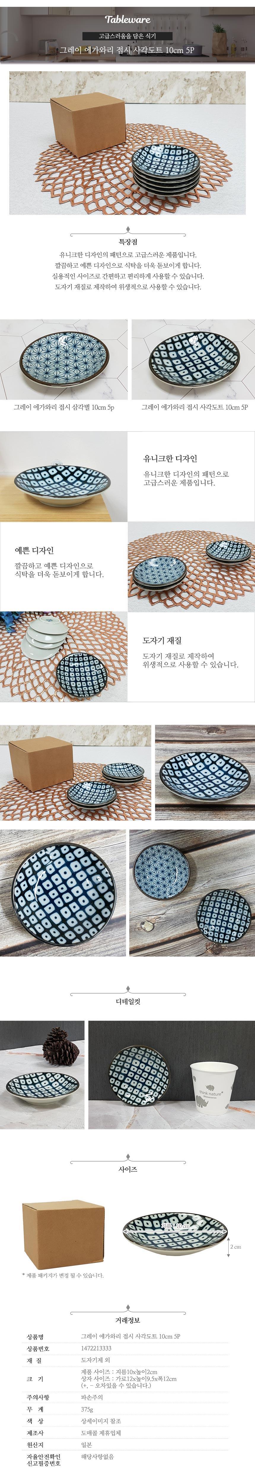 접시 10cm 5P 사각도트 그릇 식기류 예쁜그릇 식기 이미지/