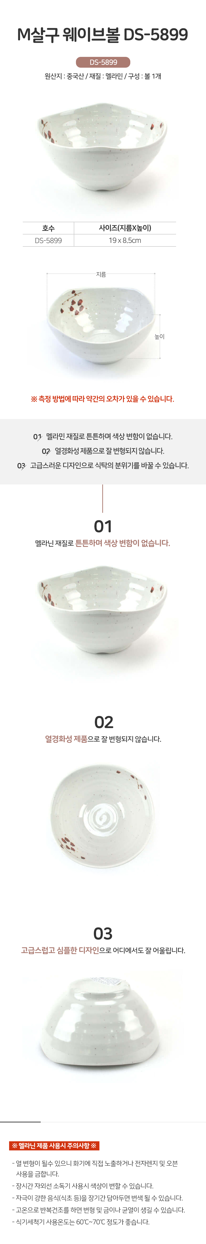 웨이브볼 DS-5899 멜라민 그릇 대접 업소용 식당 이미지/