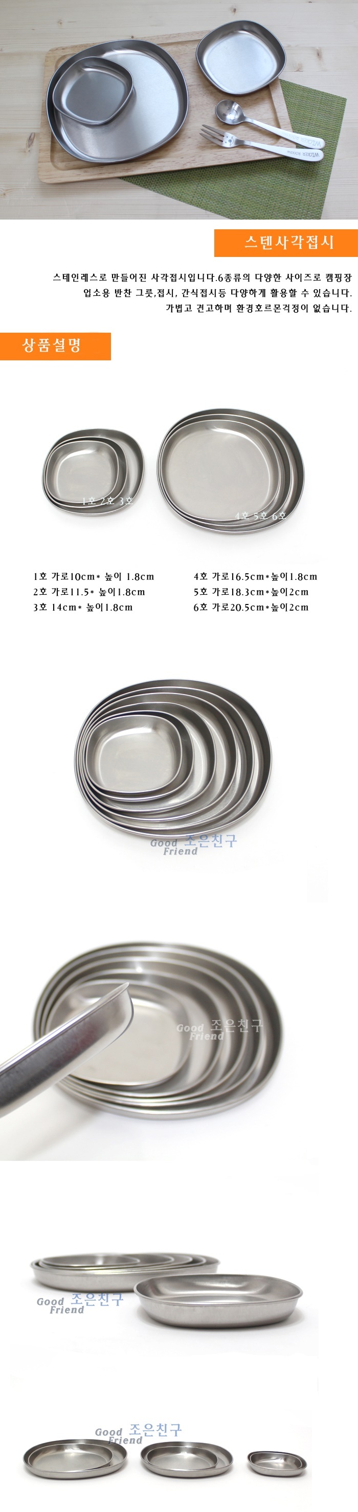 스텐사각접시 5호 예쁜 접시 그릇 스텐 스테인레스