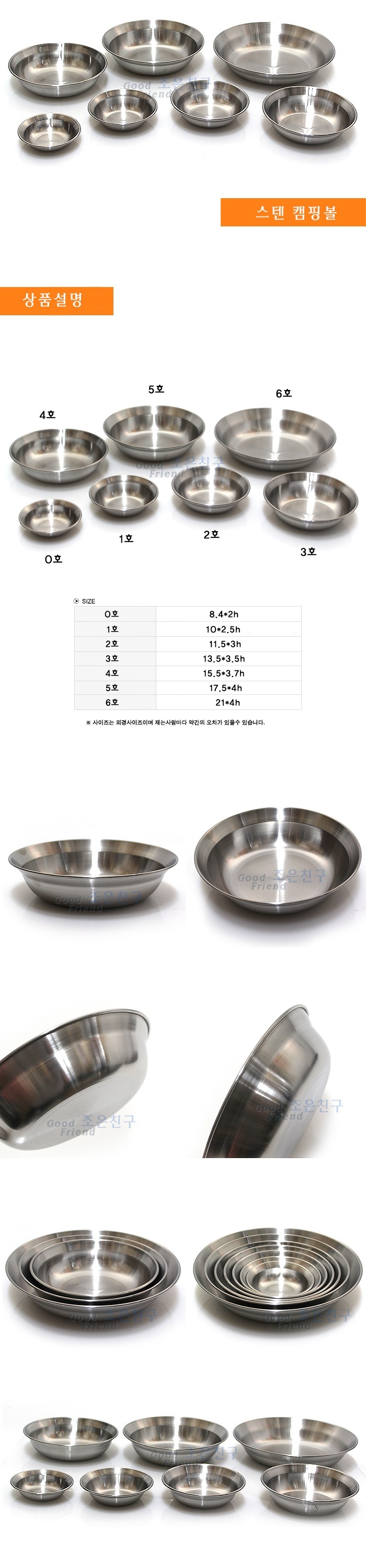 스텐 캠핑볼 6호 예쁜 접시 그릇 스테인레스 스텐