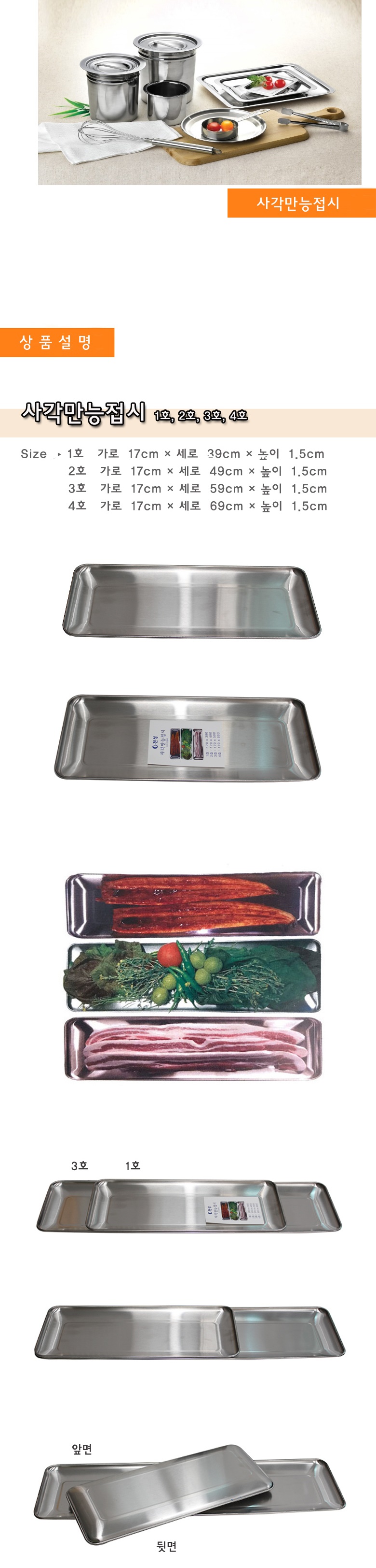사각만능접시 1호 예쁜 접시 그릇 스텐 스테인레스 스텐레스 주방용품 식기