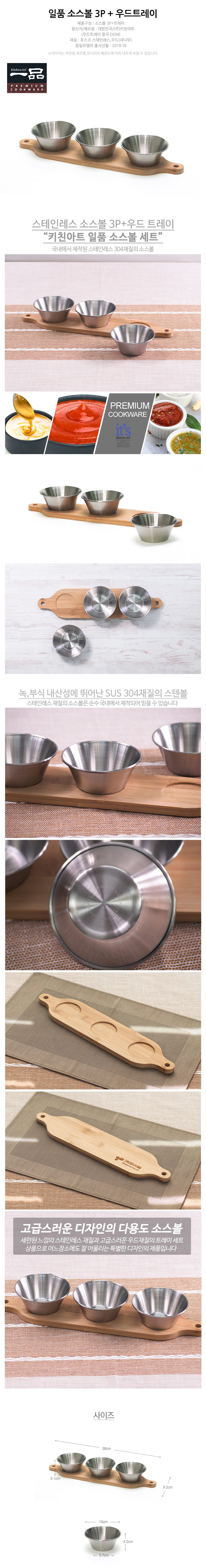 일품 스테인레스 소스볼 3P 우드트레이 종지 나눔접시