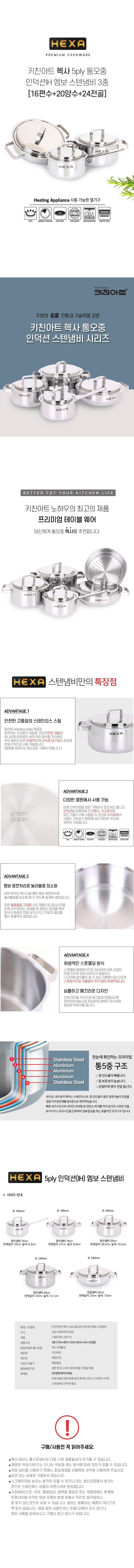 헥사5ply 통오중인덕션IH 엠보 스텐냄비3종 이미지/