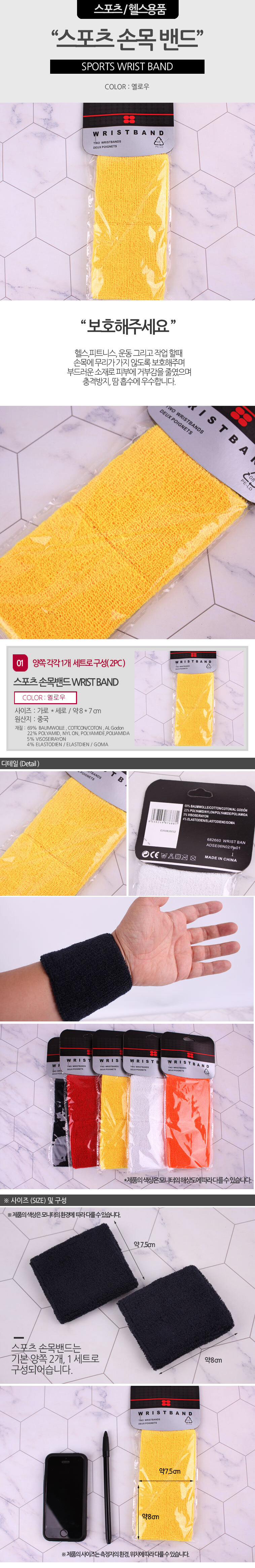 스포츠 손목밴드2P(옐로우)
