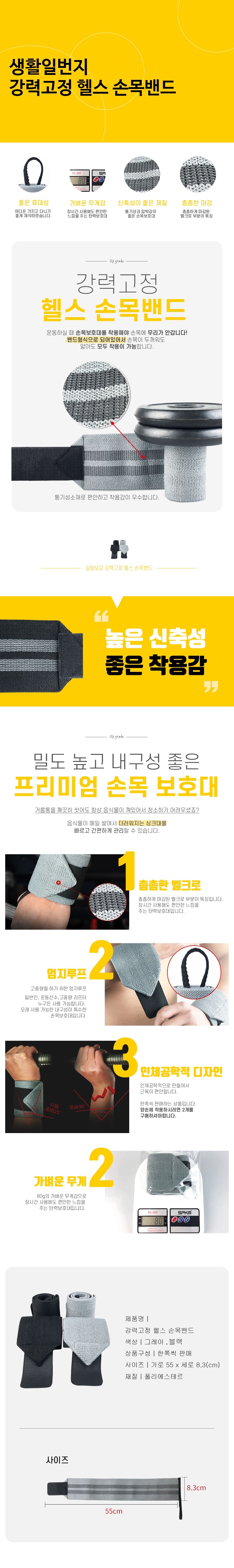 강력고정 헬스 손목밴드 왼쪽 그레이