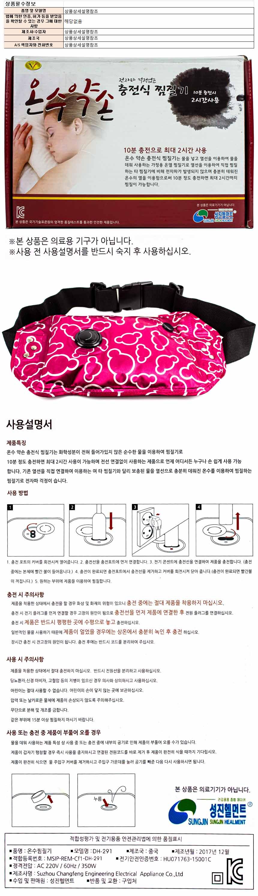 온수약손 충전식 찜질기 DH-291