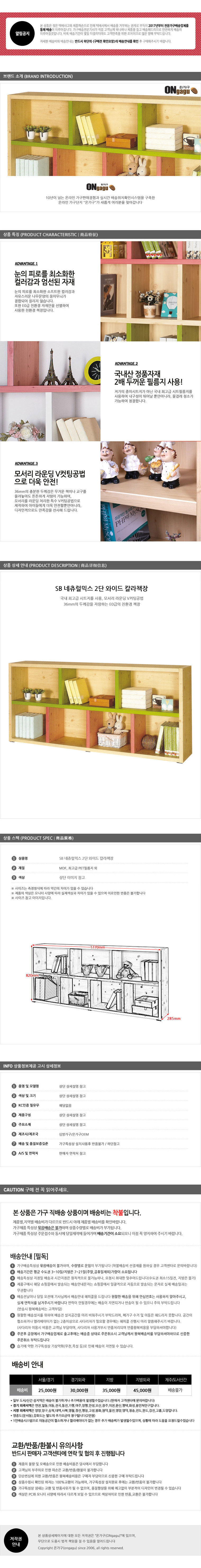 상품명: SB 네츄럴믹스 2단 와이드 칼라책장/유아/아동/어린이/서재/수석장/수납장/컬러/책꽂이