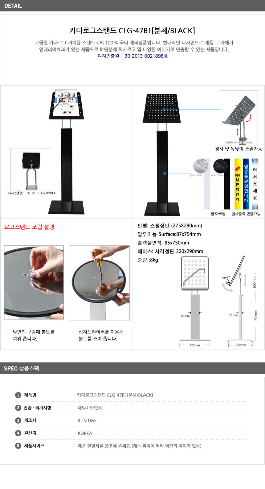 카다로그 스탠드 CLG-47B1 BLACK 분체도장 A4