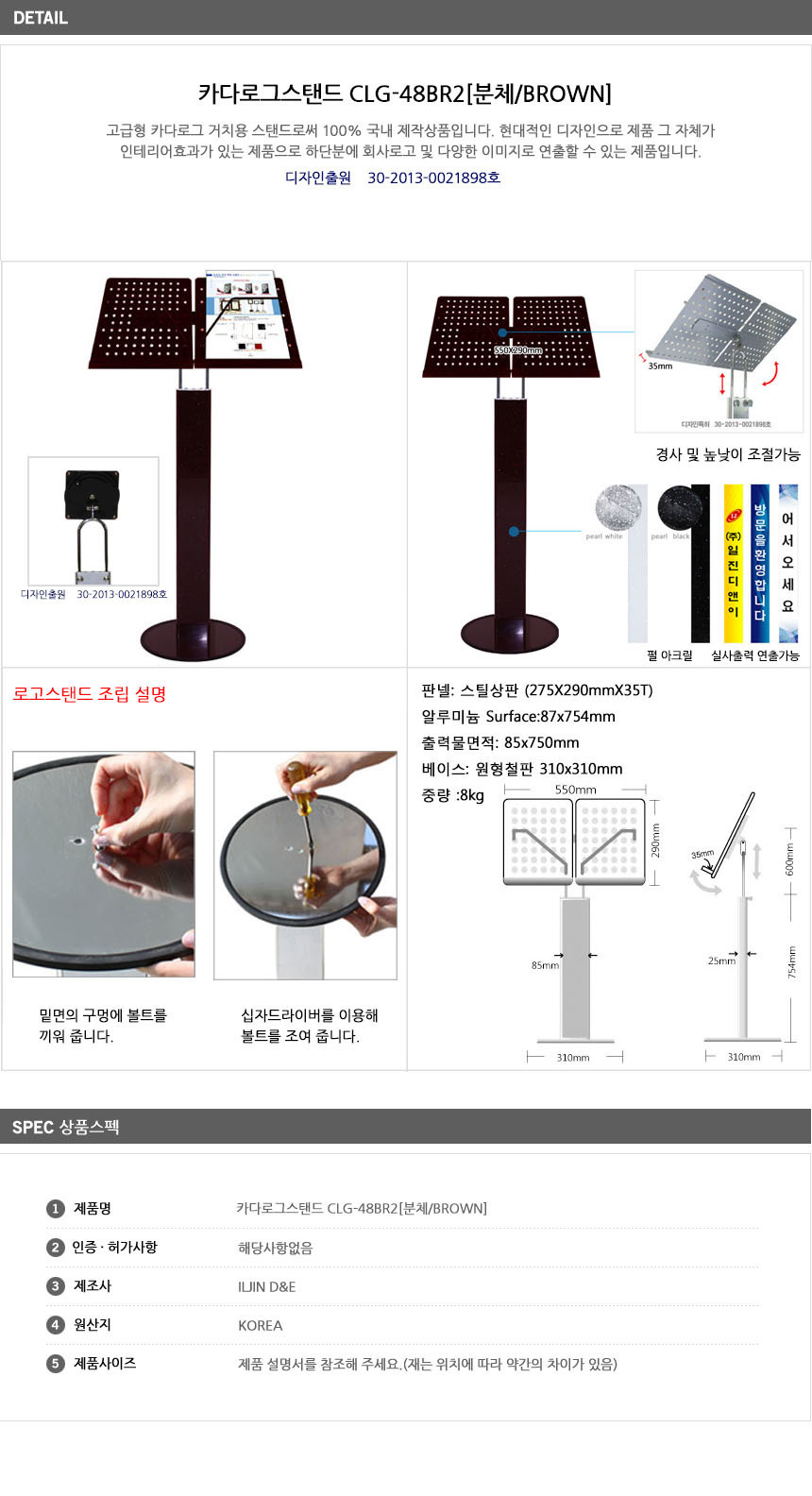 카다로그 스탠드 CLG-48BR2 BROWN 분체도장 A4 2열 이미지/