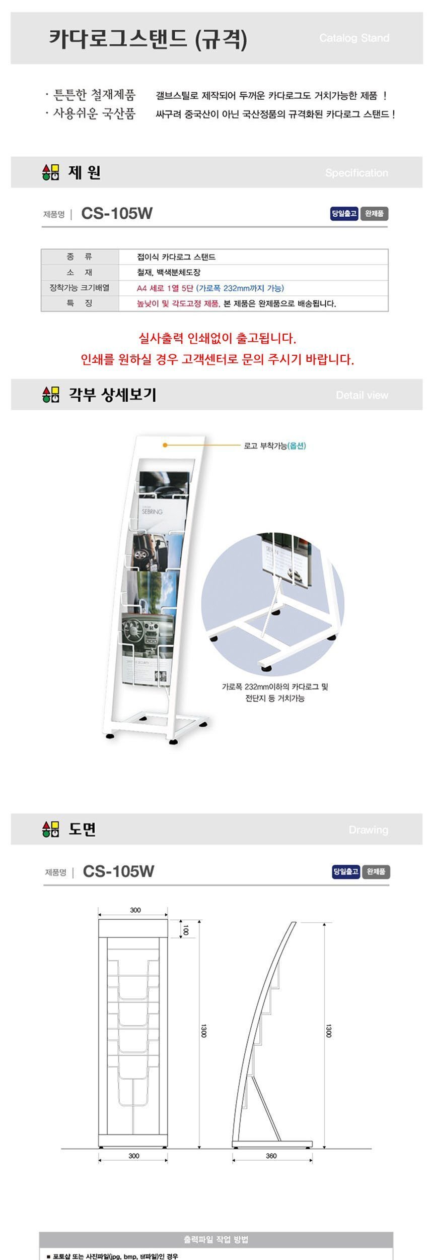 삼화 카다로그 스탠드 A4기준 1열5단 CS-105W 이미지/