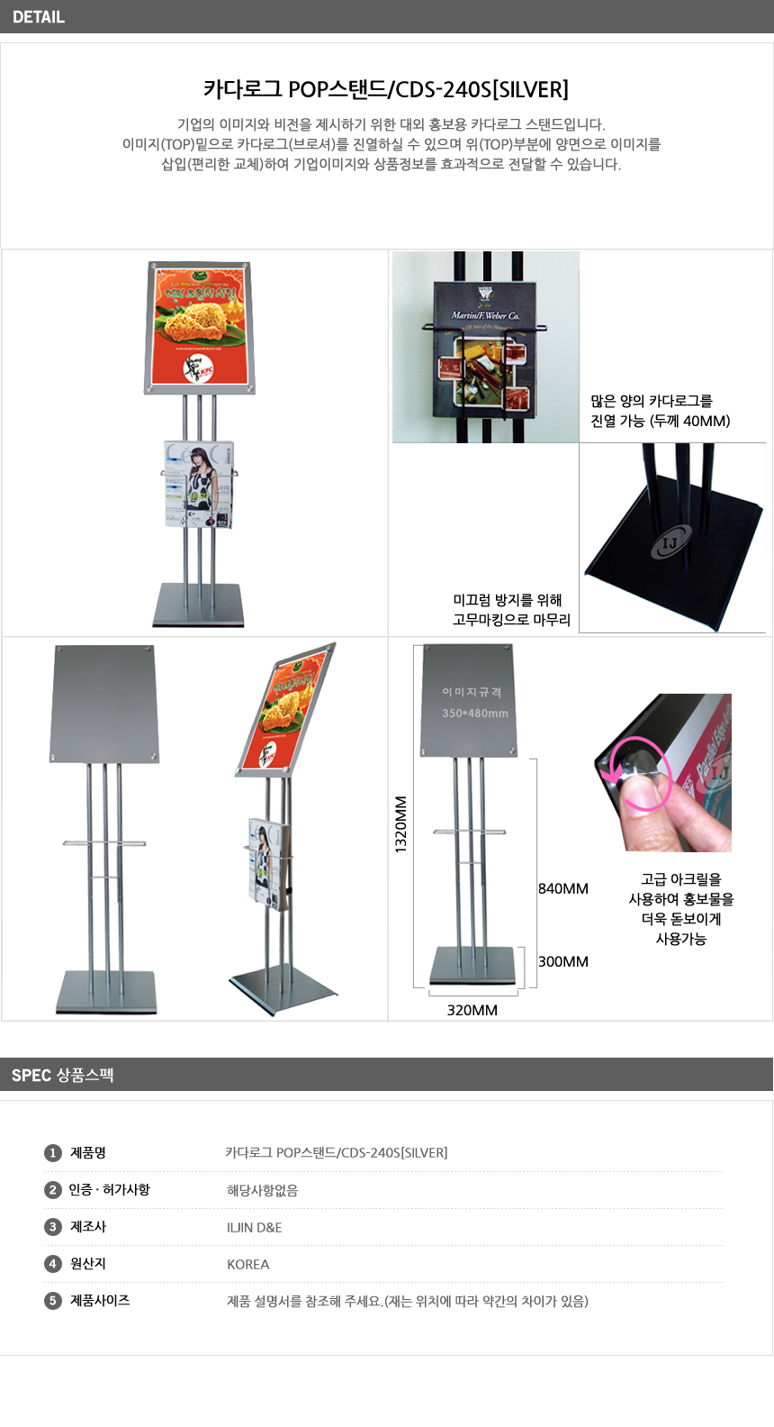 카다로그 POP 스탠드 CDS-240S SILVER A3 단면형 이미지/