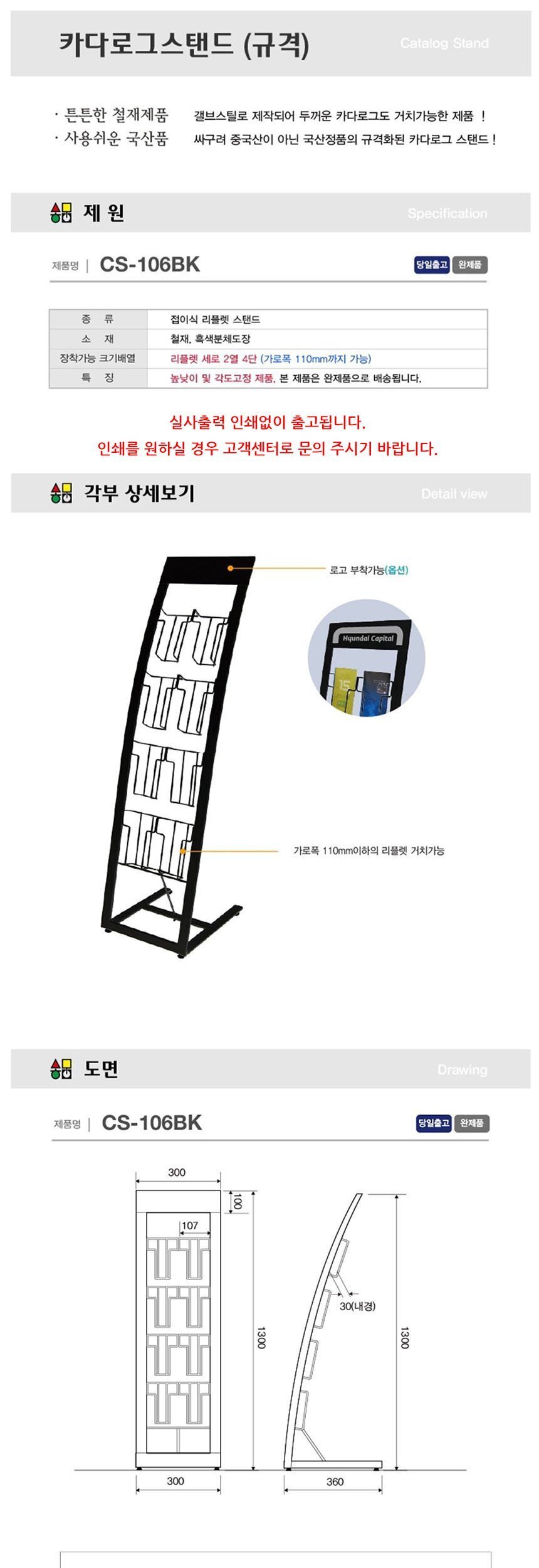 삼화 카다로그 스탠드 리플렛 2열4단 CS-106BK 이미지/
