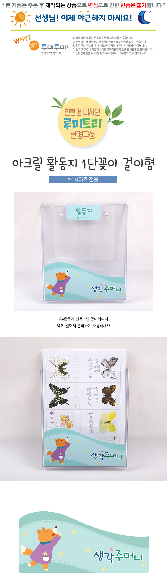 아크릴 활동지 1단꽂이 걸이형 A4전용 책장