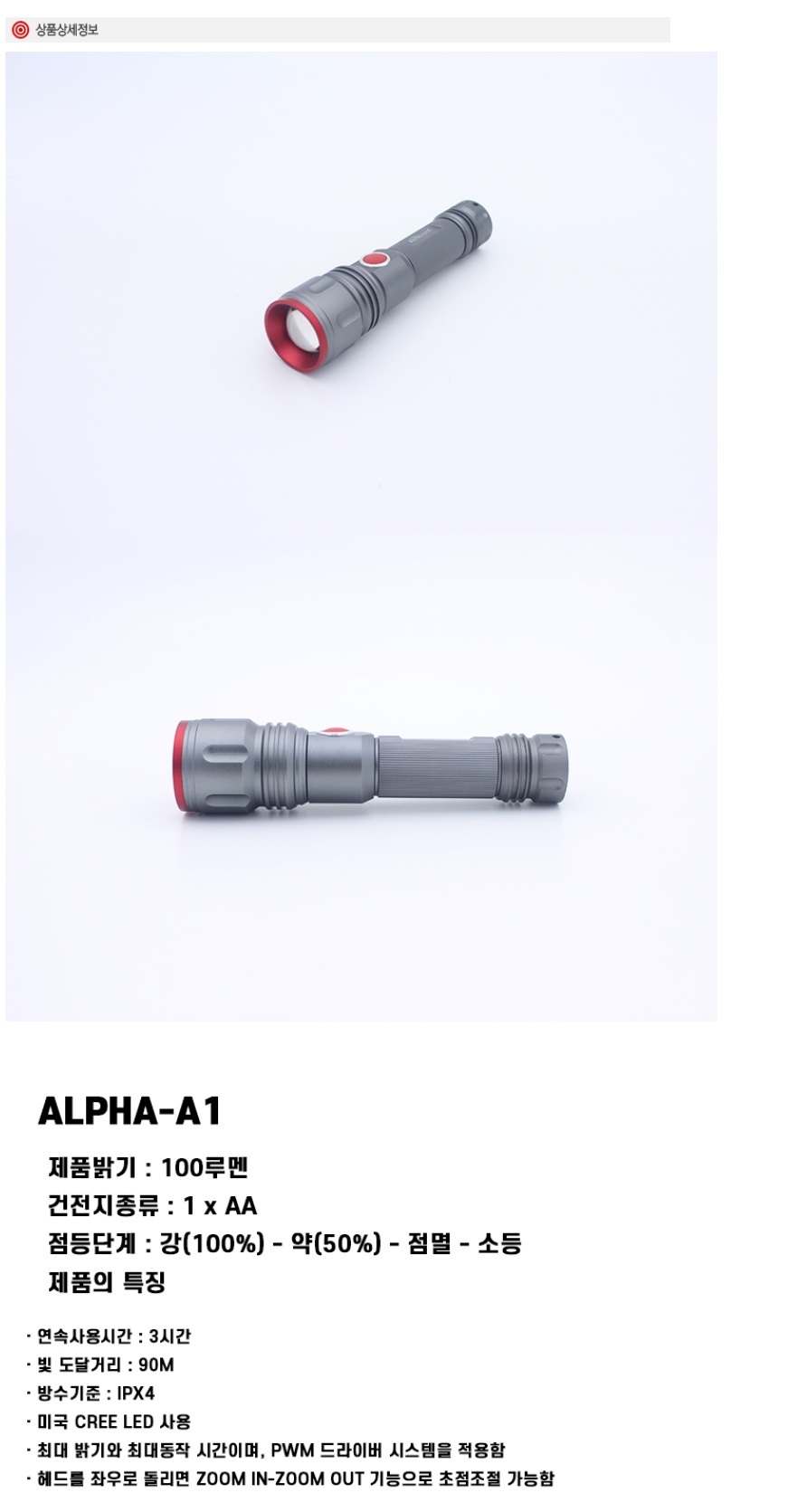 손전등 알파에이1 1p 후레쉬 미니랜턴 라이트 캠핑