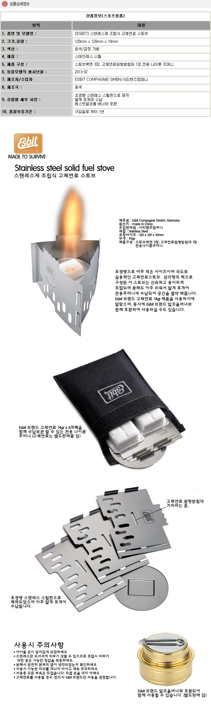 [ESBIT 에스빗 스텐레스제 조립식 고체연료 스토브] 이미지/