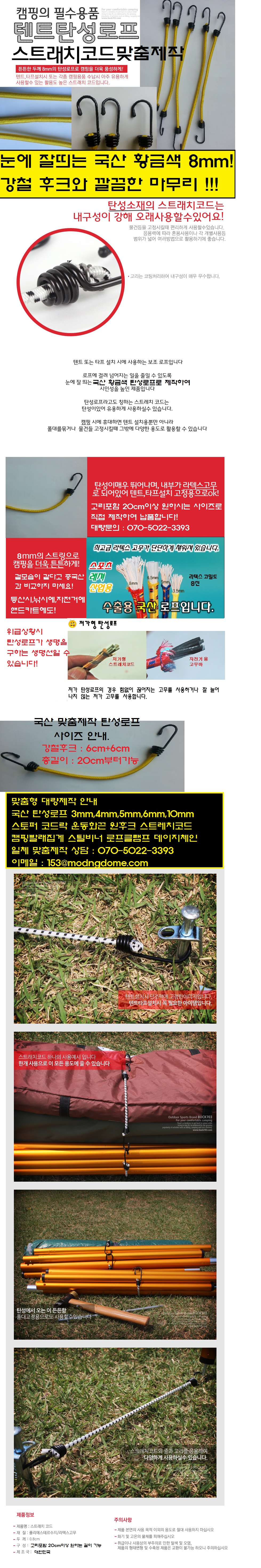 캠핑용 국산 8mm 탄성로프 스트래치코드 50cm 맞춤제 이미지/