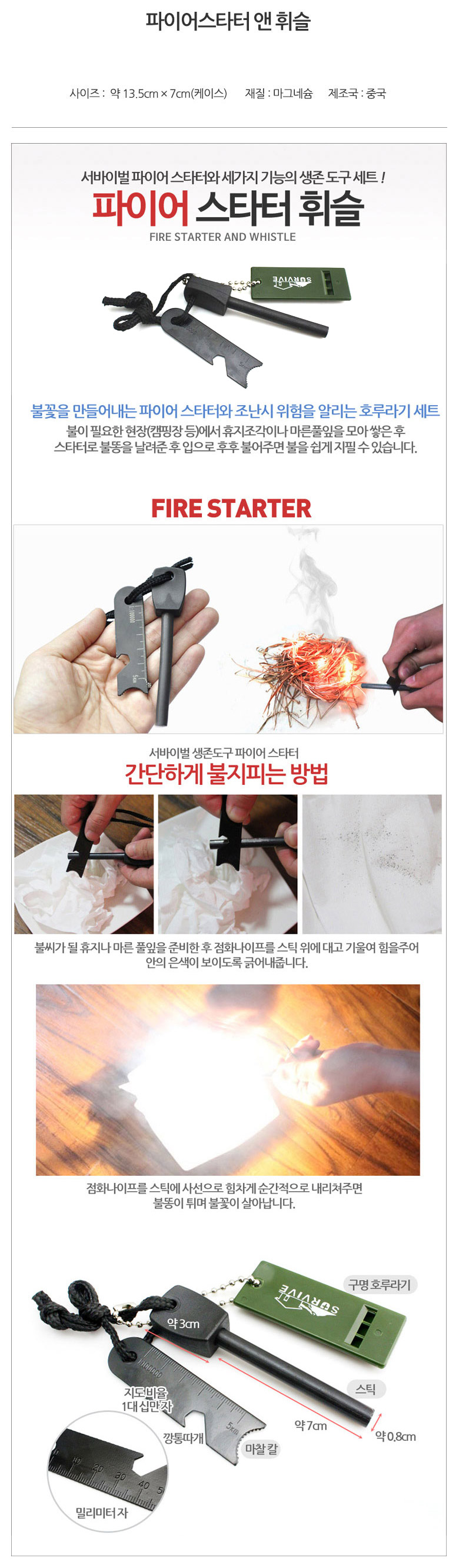 [도매직방] 고급파이어스타터휘슬 부싯돌 캠핑용품