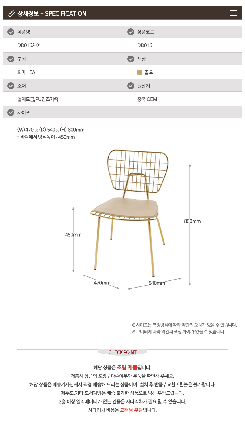 제조국/원산지 상품상세설명에 표기