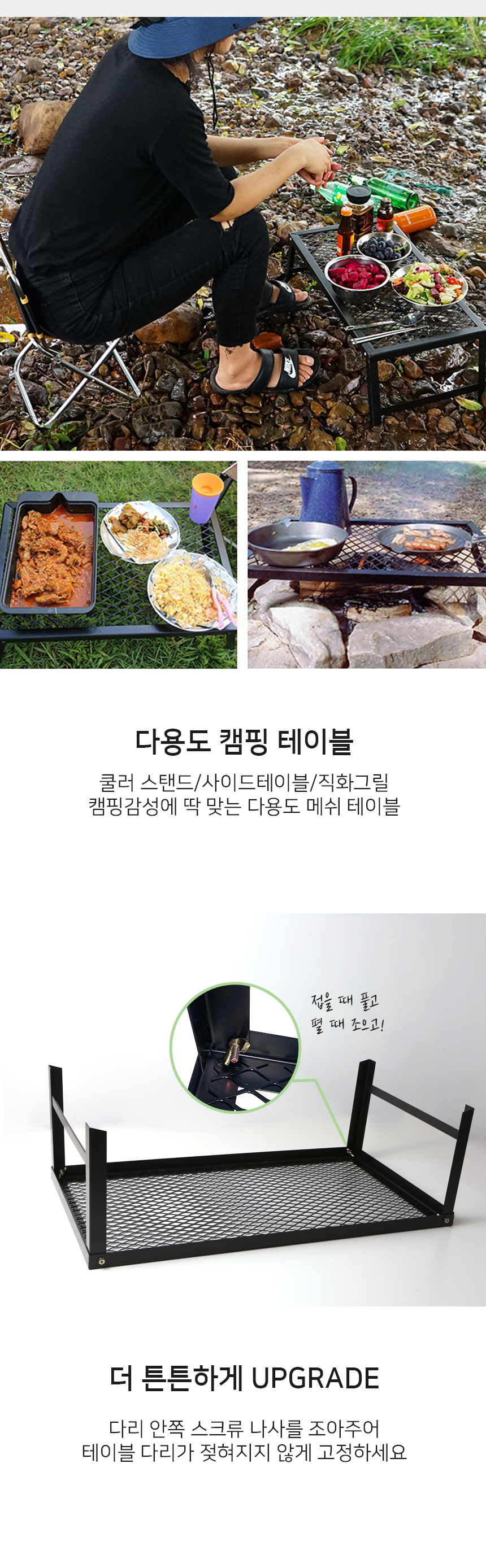 접이식 캠핑 그릴겸용 메쉬 테이블 / 석쇠 그릴 야외 바비큐 화로대 석쇠구이판 바베큐그릴 이미지/