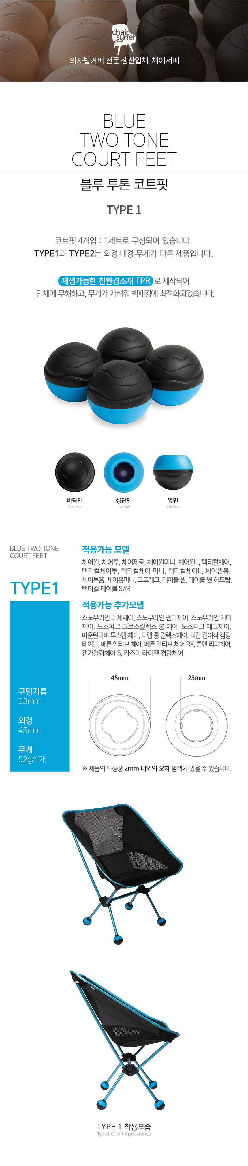 국산 캠핑의자 발커버 블루 투톤 코트핏 TYPE 1 내부 23mm/ 4개입(체어1개용) 이미지/