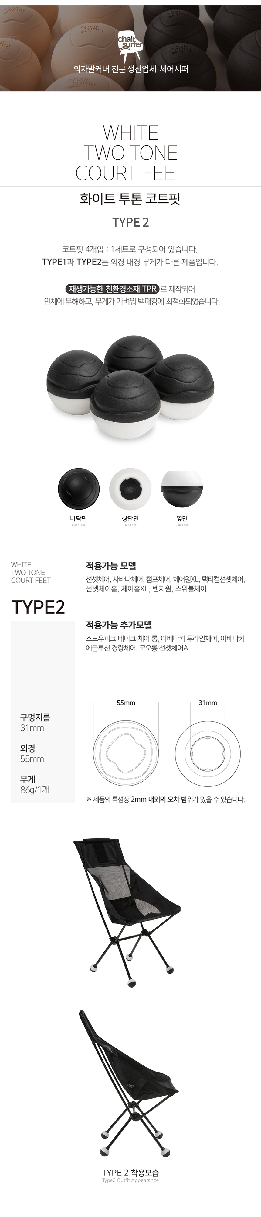 "국산 체어서퍼의 다양한 캠핑의자 의자발커버 / 의자발캡 상품을 소개합니다!"