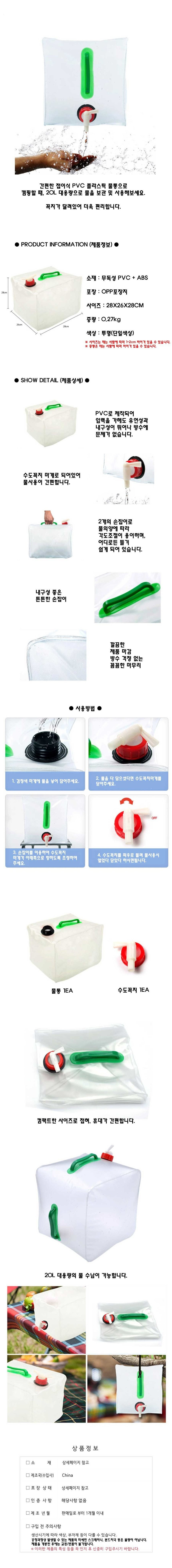 캠핑 물통 20L 여행 피크닉 등산 낚시 스포츠 레저 이미지/