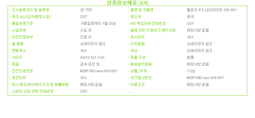 벨로프 9구 Led라이트 ws-001 전구 조명 랜턴