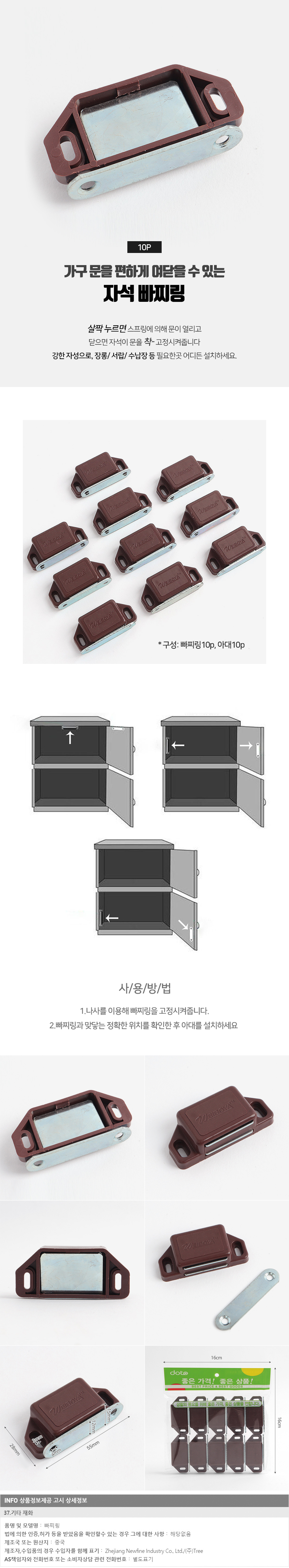 생활철물 자석 빠찌링 10p세트(브라운)가구 도어캐치 이미지/