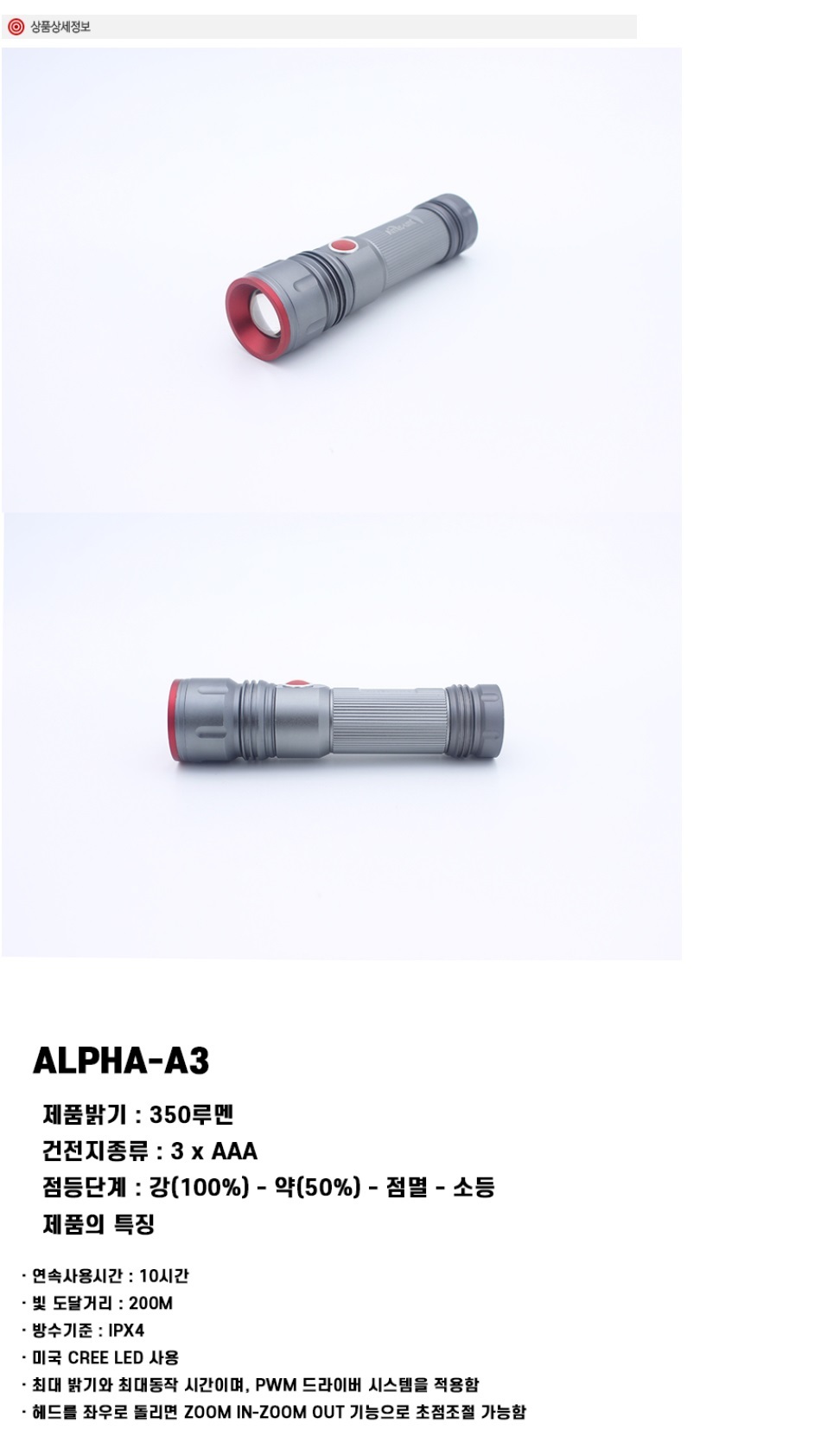 손전등 알파에이3 1p 후레쉬 미니랜턴 라이트 캠핑