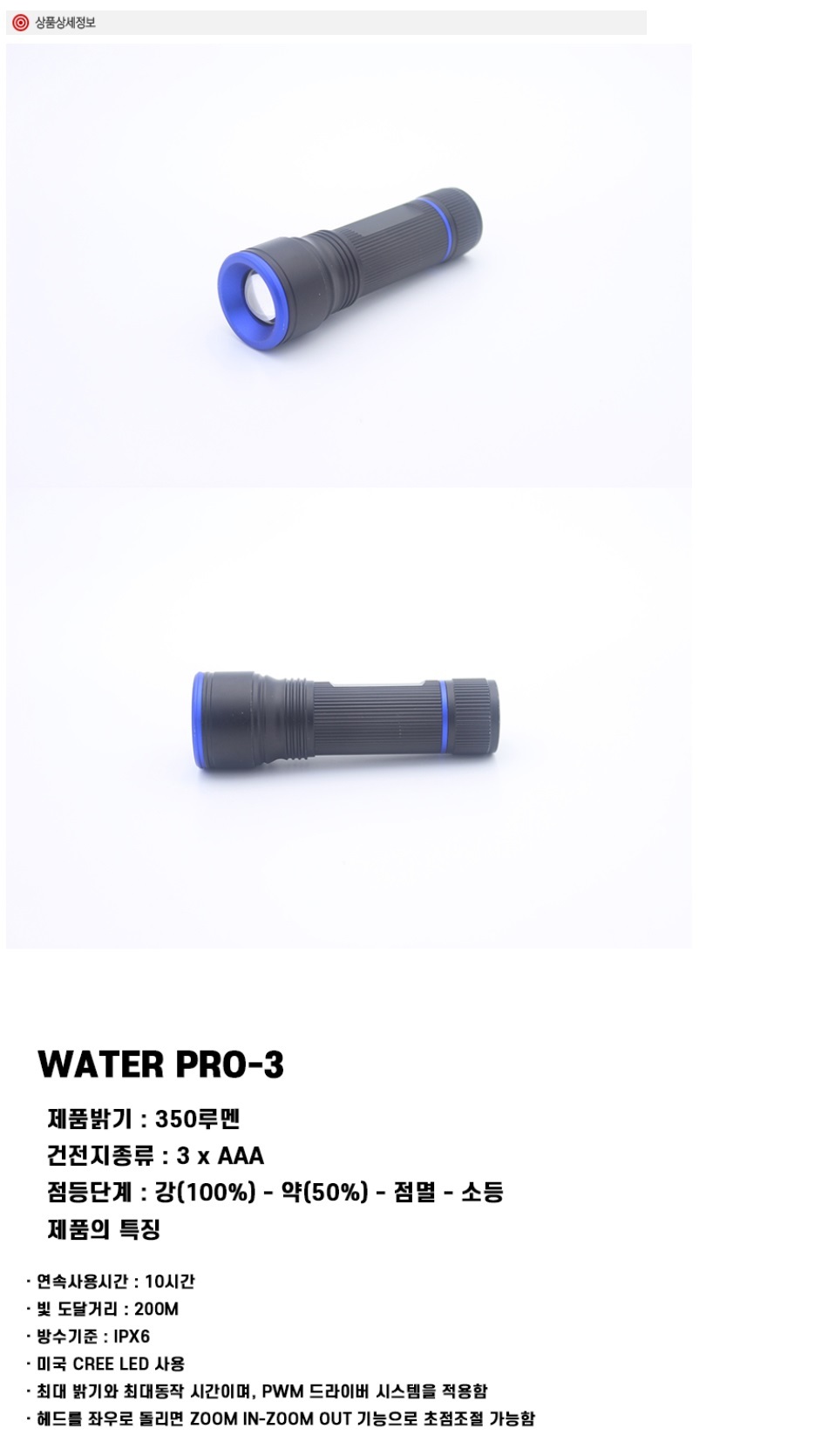 손전등 워터프로3 1p 후레쉬 미니랜턴 라이트 캠핑