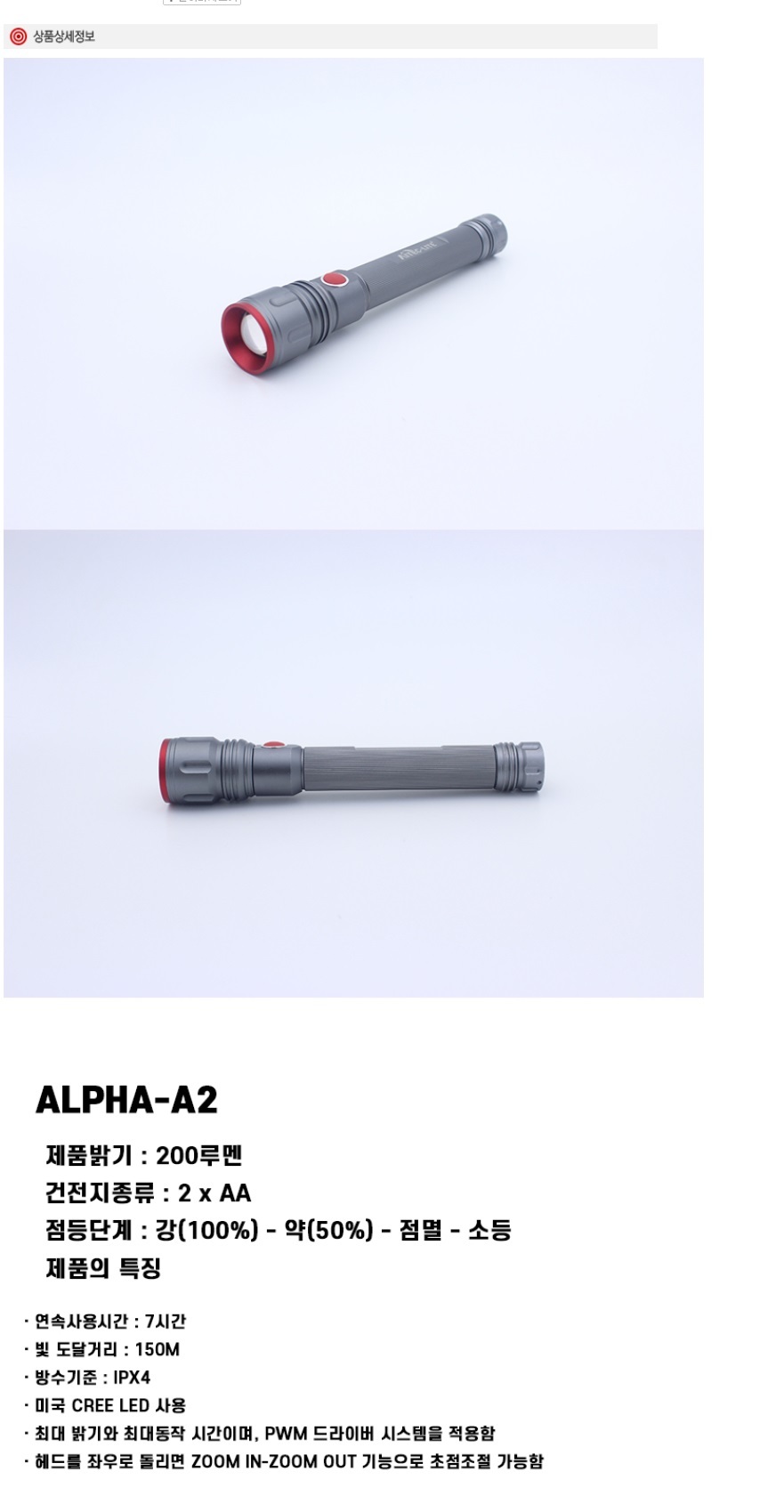 손전등 알파에이2 1p 후레쉬 미니랜턴 라이트 캠핑