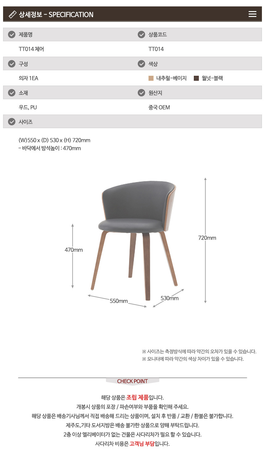 TT014 체어 1인용 PU 원목의자 이미지/