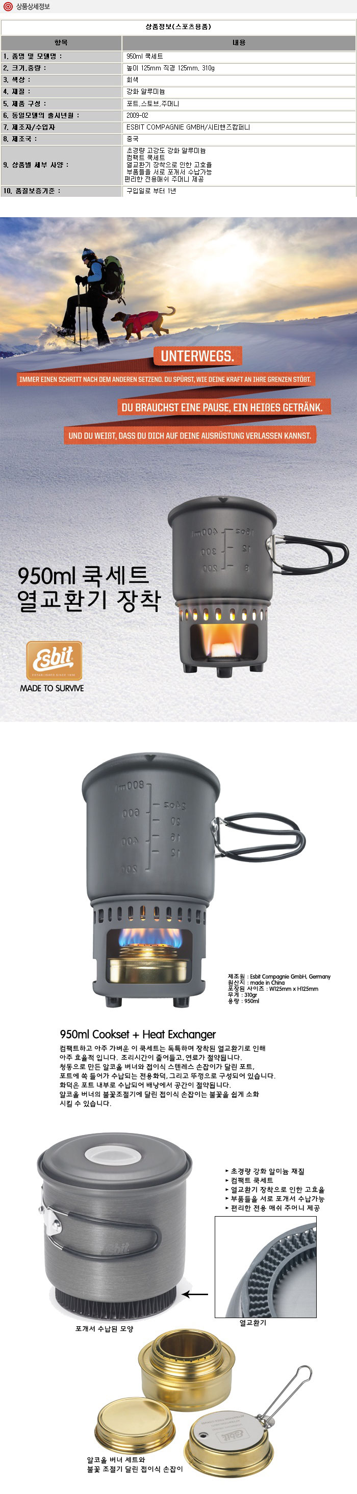 [ESBIT 에스빗 950ml 쿡세트] 열교환기장착 취사용품