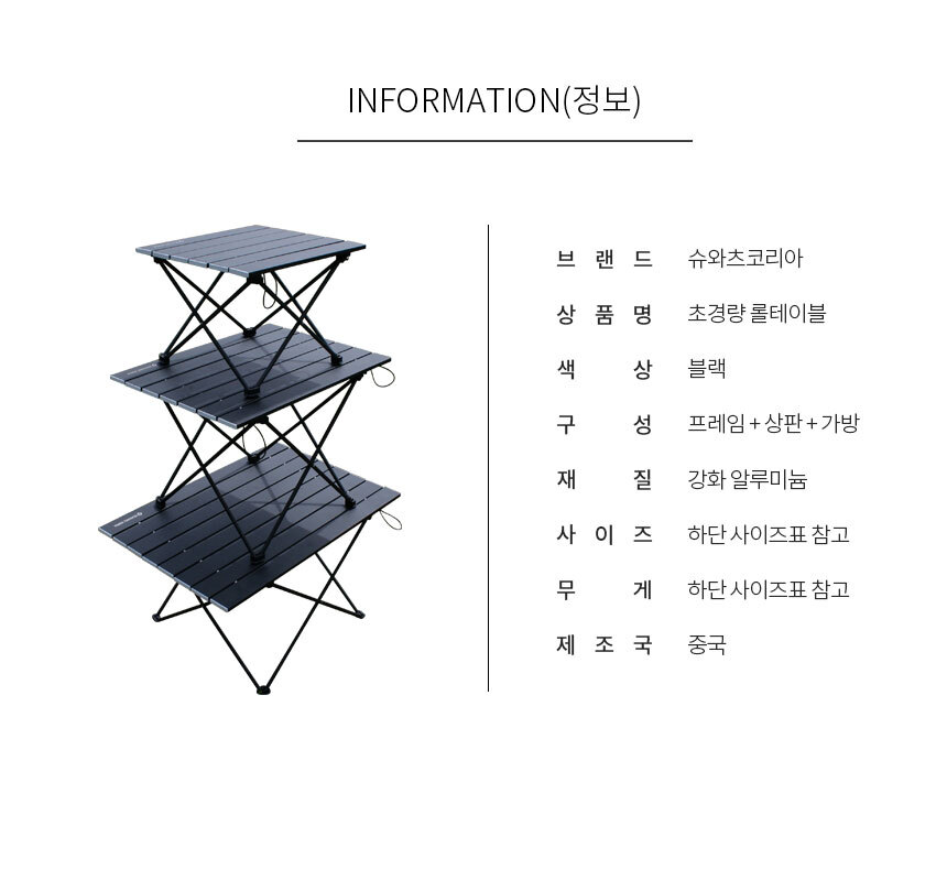 슈와츠코리아 백패킹 초경량 롤테이블 블랙