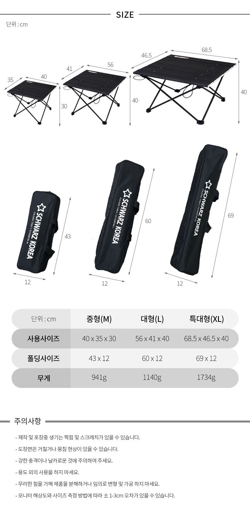 1. 품명 및 모델명 : 슈와츠코리아 초경량 롤테이블 블랙