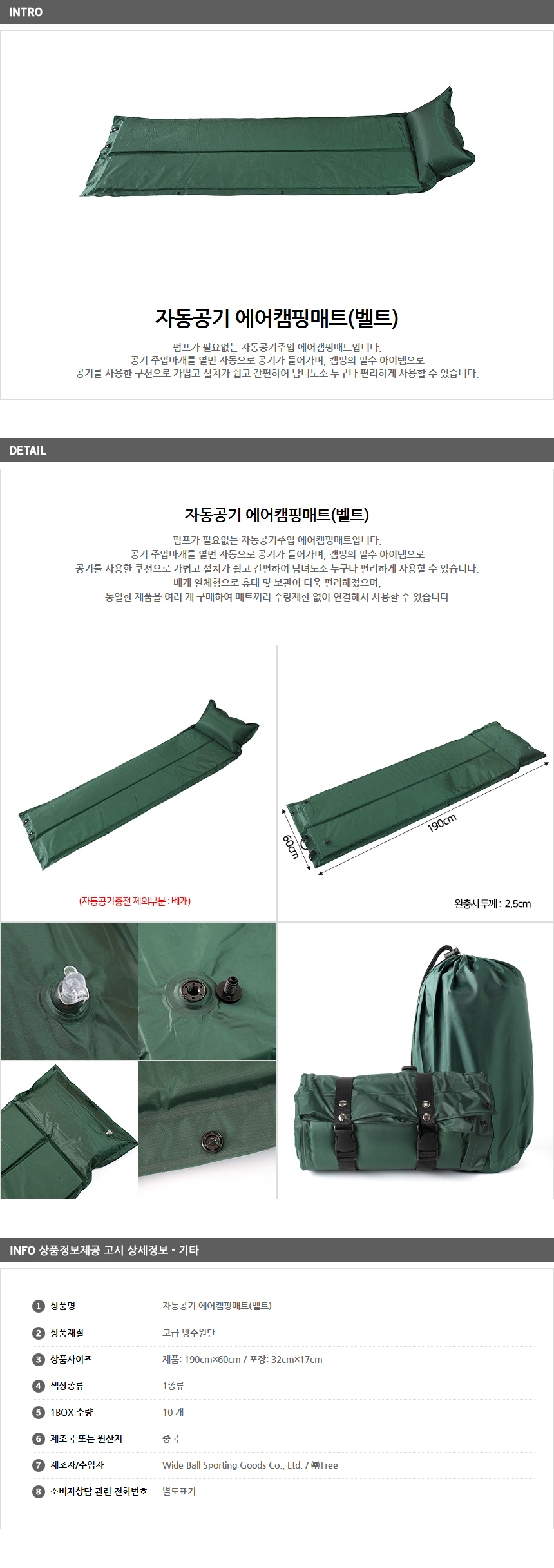 자동공기 에어캠핑매트(벨트)
