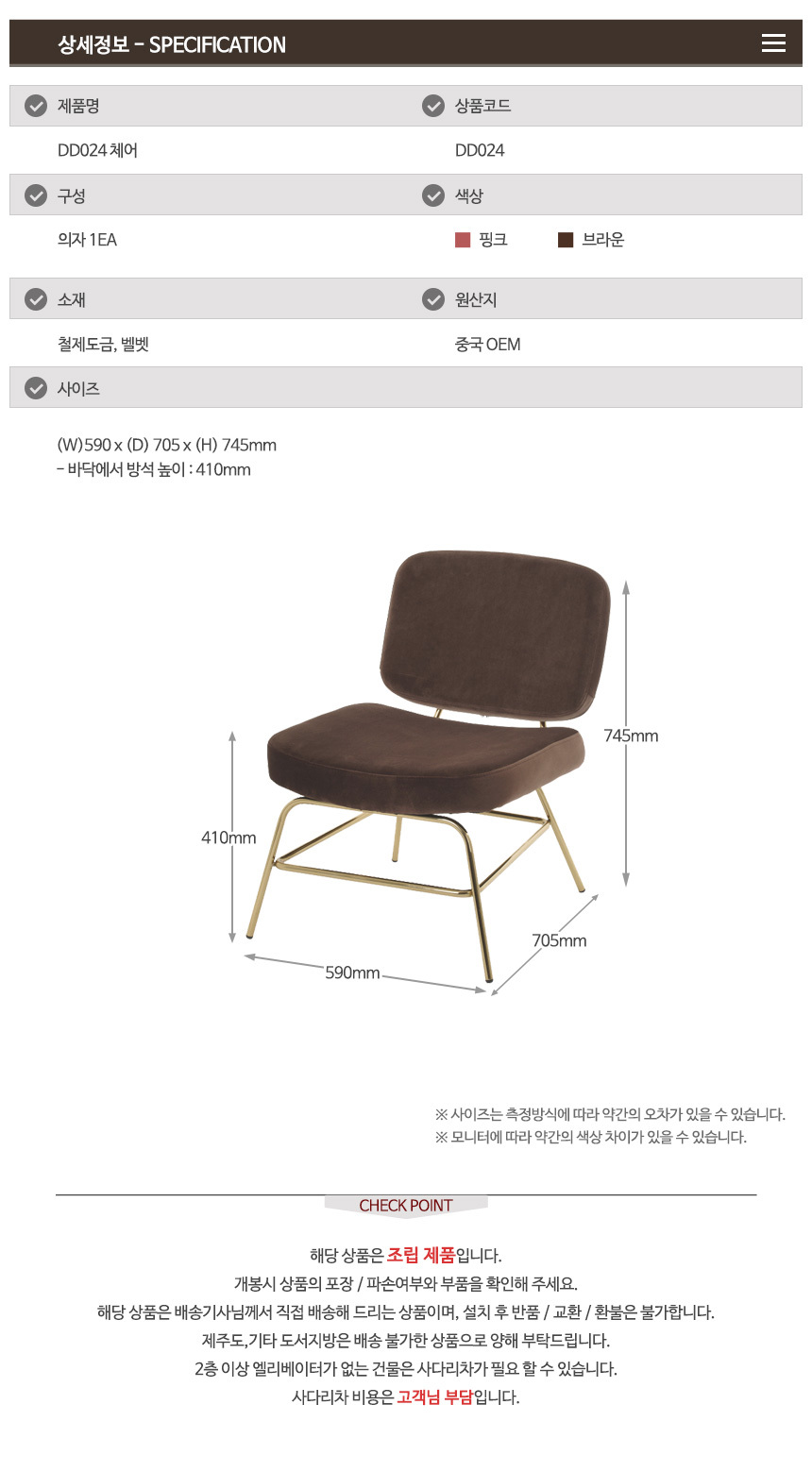 DD024 체어 1인용 벨벳의자