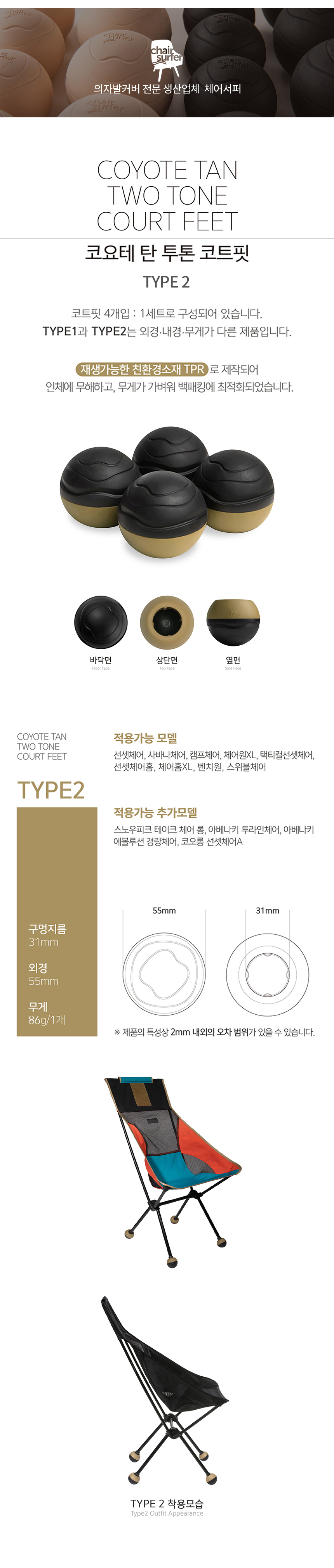 국산 캠핑의자 발커버 코요테 탄 투톤 코트핏 TYPE 2 내부 31mm/ 4개입(체어1개용 이미지/